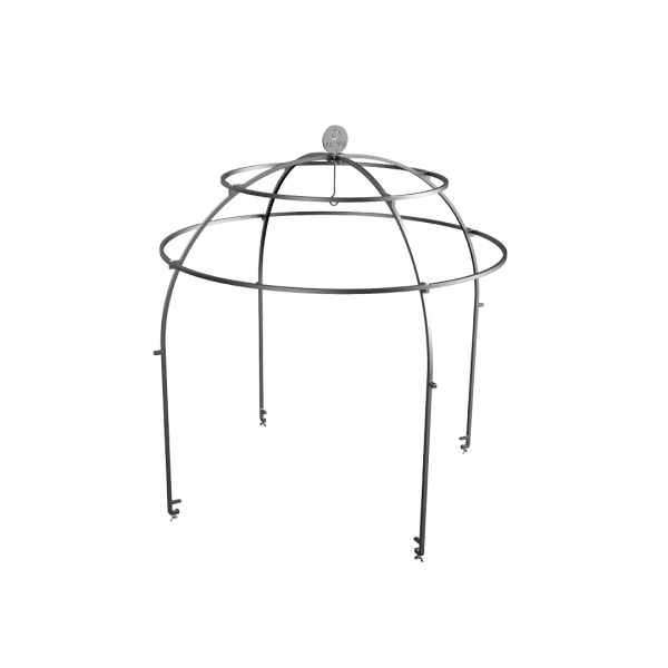 La Cage OFYR est l'accessoire parfait pour les professionnels qui aiment les cuisines ouvertes. Sa structure en forme de dôme permet de suspendre des aliments aux barres d'acier, créant ainsi un élément visuel original et utile. La chaleur du feu cuit lentement les aliments, que ce soit de la viande, du poisson, des fruits ou des légumes. Comme la cage est fixée sur le bord extérieur de la plaque, la surface de cuisson reste libre pour préparer d'autres plats. Les ingrédients peuvent être suspendus aux barres avec des brochettes et des crochets en S.